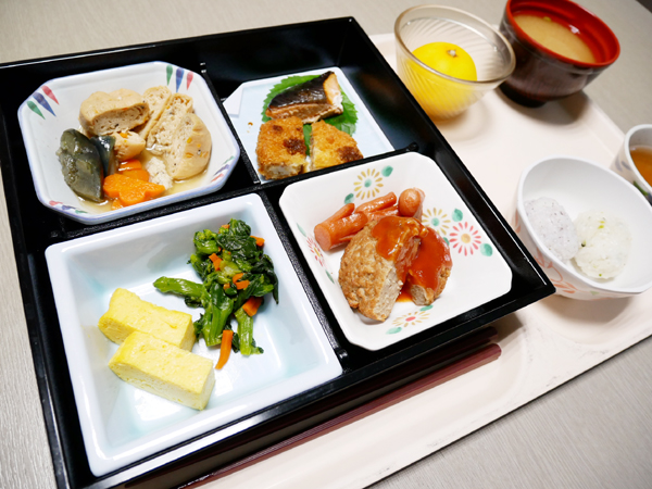 ハンバーグやタコさんウインナー、玉子焼きなどが入っていて